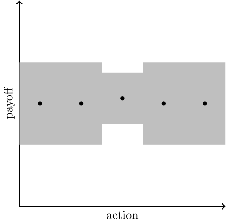 You choose some \(x\) and get payoff \(y(x)\). The function \(y(.)\) is unknown, so you don’t observe the payoff until you try it out. You can interpret the action as a blueprint for a house, a business plan, a computer program, an agricultural practice, a novel, a song. Everything below also applies when the payoff depends on the state, \(v(x|z)\), and so the action is context-specific, e.g. replying to an email, operating a car, operating a machine, writing copy to advertise some product.